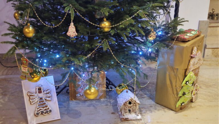 Choinki przy ołtarzu w kościele zostały w tym roku udekorowane piernikami, które wykonali uczniowie w ramach szkolno-parafialnego konkursu. Pierniczkowe ciasteczka o bardzo różnych kształtach i